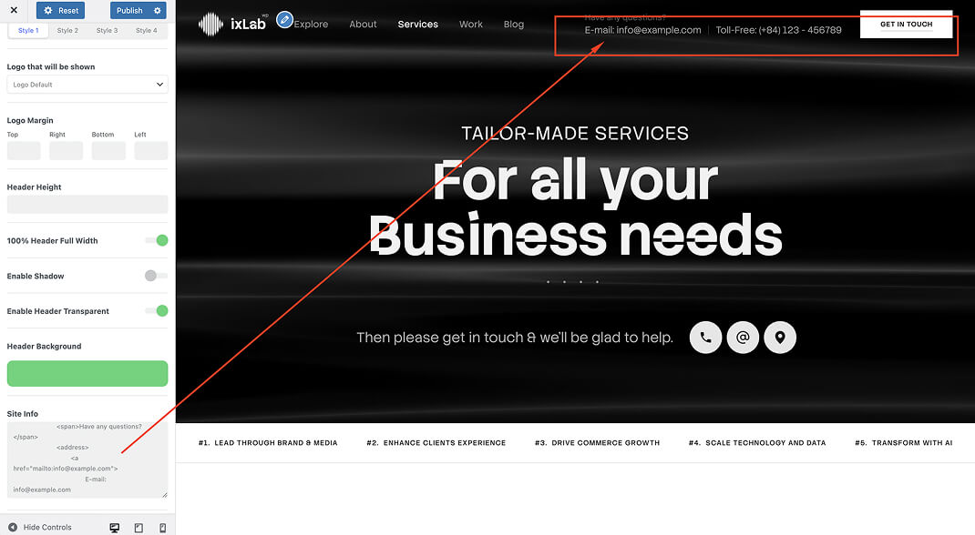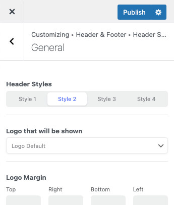 Now the chosen header style is set to be the default header of all pages. However, you can still set a different header style for particular pages, blogs or products by setting a style in each section.