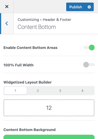 - Content Bottom #1 to #4: This areas will be used to display content bottom widgets