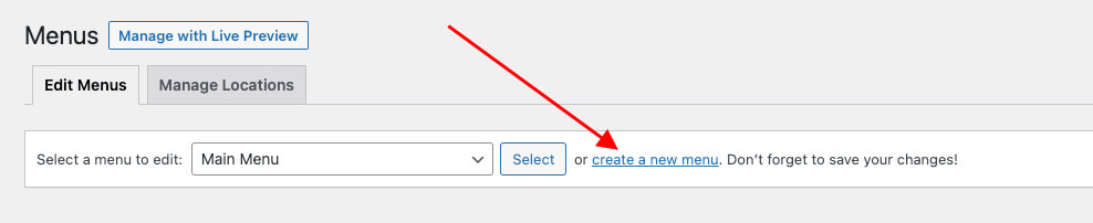 Step 1: Navigate to Appearance > Menus in your admin sidebar and click Create a new menu option.