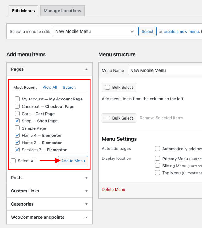 Step 3: Choose menu items you want to add from the left and hit Add to Menu.