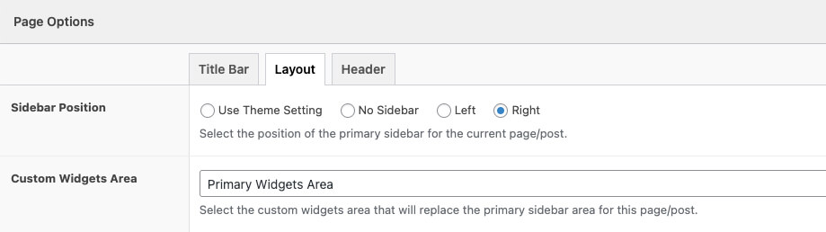 - Primary Widget Areas: This is the default sidebar, it will be displayed on the left or right of your page depend on the sidebar position you choose.