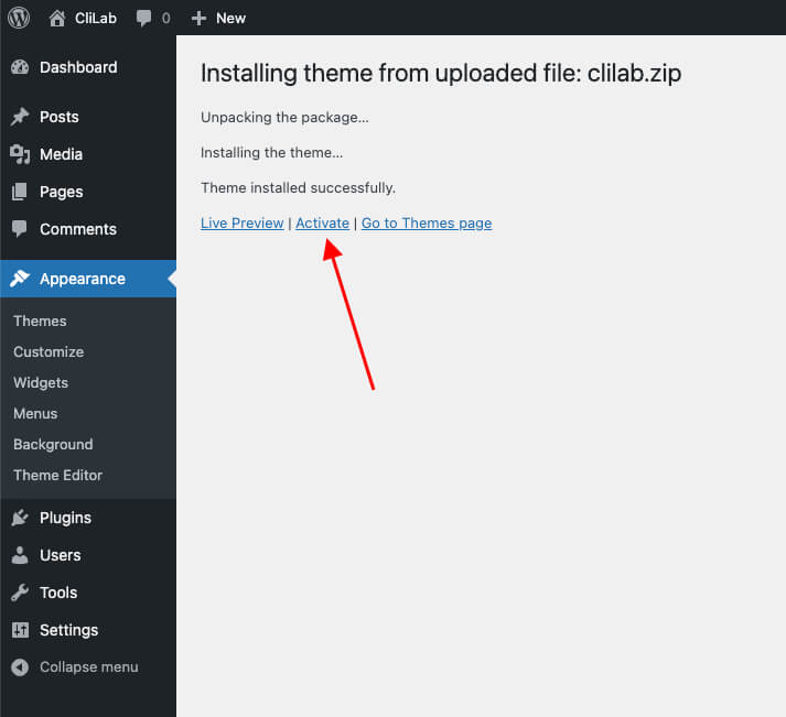 Step 4: Then simply upload and activate the nanofix file in the Appearance > Themes section like you've done when installing theme.