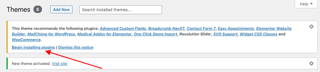 Click Begin installing plugins. You will be navigated to Install Required Plugins page.