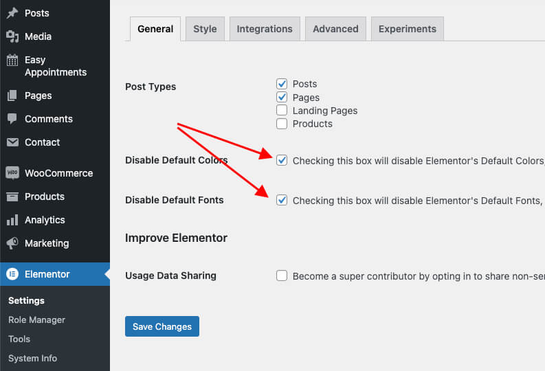Note: After finished importing, go to Elementor > Setting. Disable Default Colors & Fonts then hit Save changes.