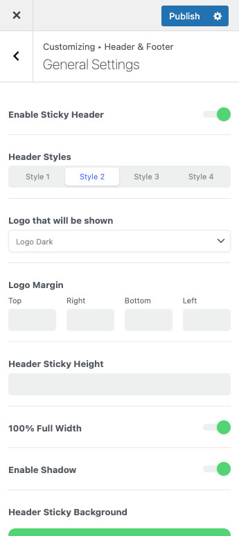 Now you can enable or disable the Sticky Header. In addition, you can also customize its Background, Header Styles,... of the Sticky Header.