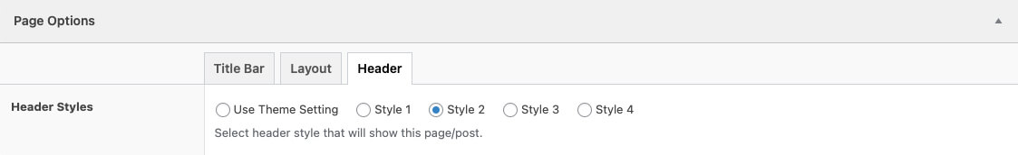 If the default header is Header Style 1 but you choose Header Style 2 in Page Option > Header then Header Style 2 displays in your page instead of Header Style 1.
