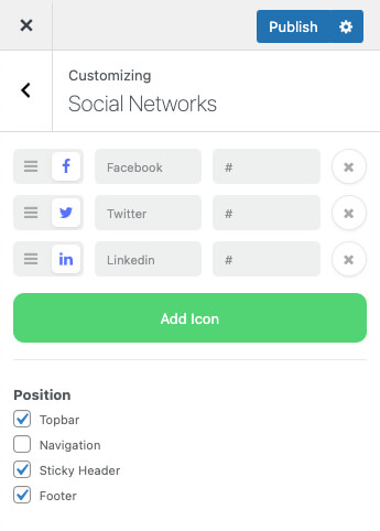Managing the social networks which will be shown on the website based on the chosen positions.