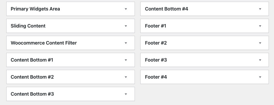 - Primary Widget Areas: This is the default sidebar, it will be displayed on the left or right of your page depend on the sidebar position you choose.