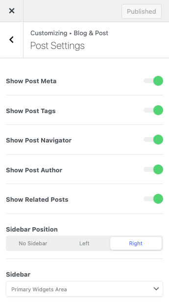 Sidebar: You can select Sidebar and Sidebar Position to display on the Single Post.