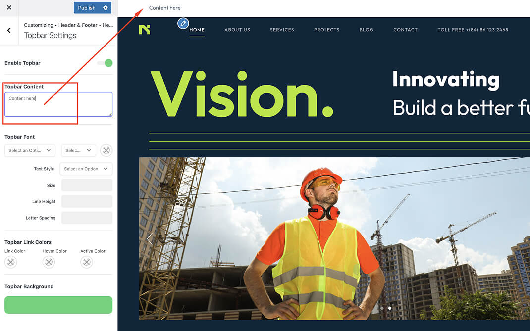 Navigate to Appearance > Customize > Header & Footer > Topbar Setting