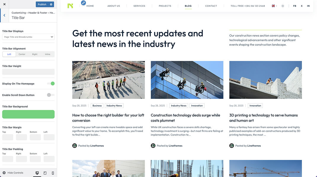 Navigate to Appearance > Customize > Header & Footer > Title Bar