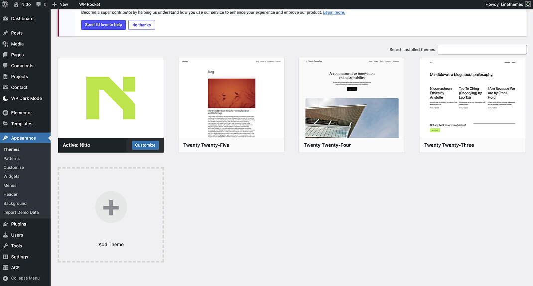 Step 4: Then simply upload and activate the nanofix file in the Appearance > Themes section like you've done when installing theme.